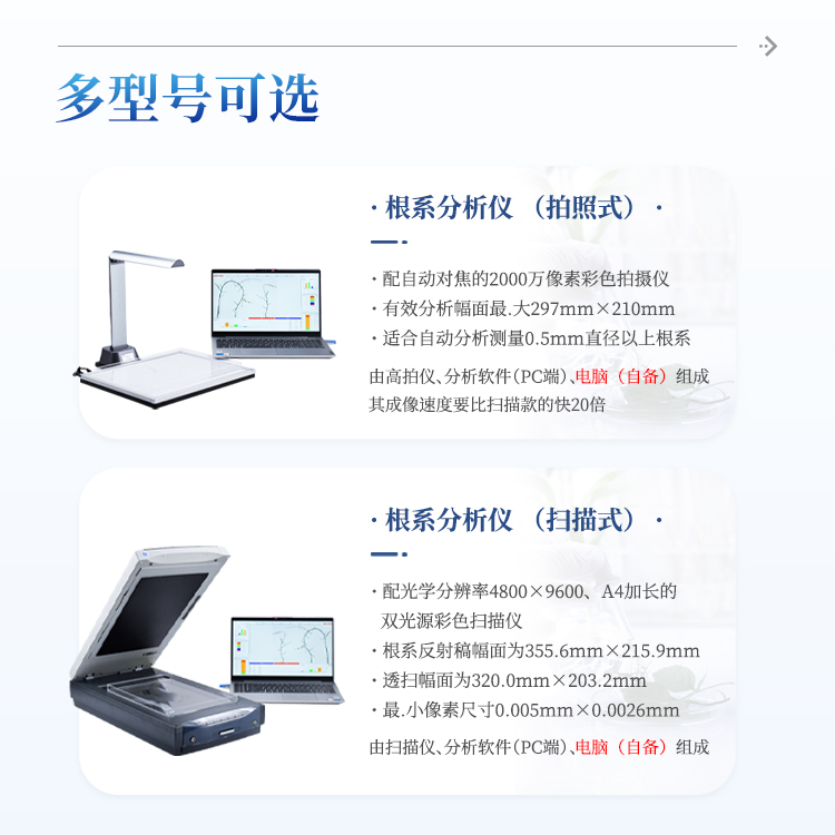 1、配自动对焦的2000万像素彩色拍摄仪。有效分析幅面最大297mm×210mm。特别适合快速自动分析测量0.5mm直径以上根系。