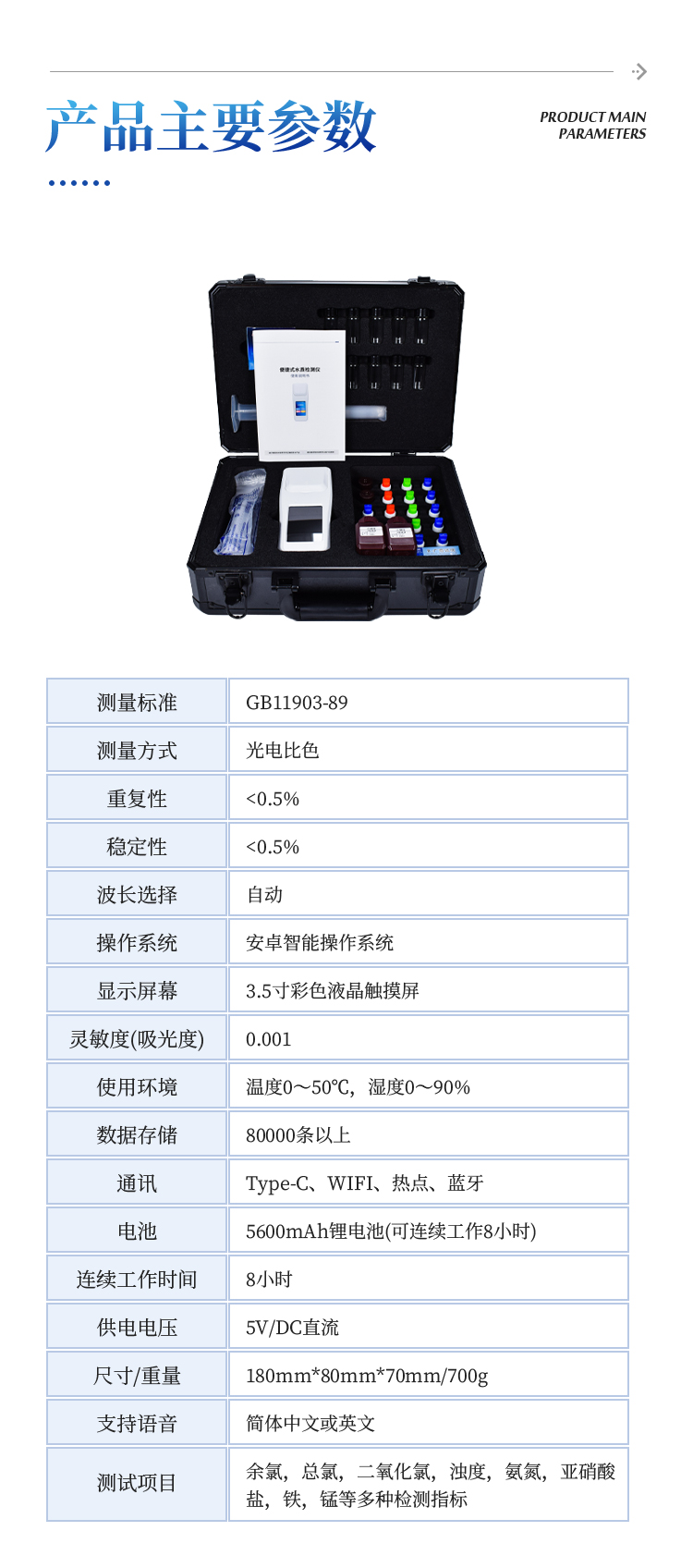 适用于纯净水厂、自来水厂、生活污水处理厂、工业污水、水产养殖、河流监测、游泳场馆、水源保护、生产监测、科研实验等。