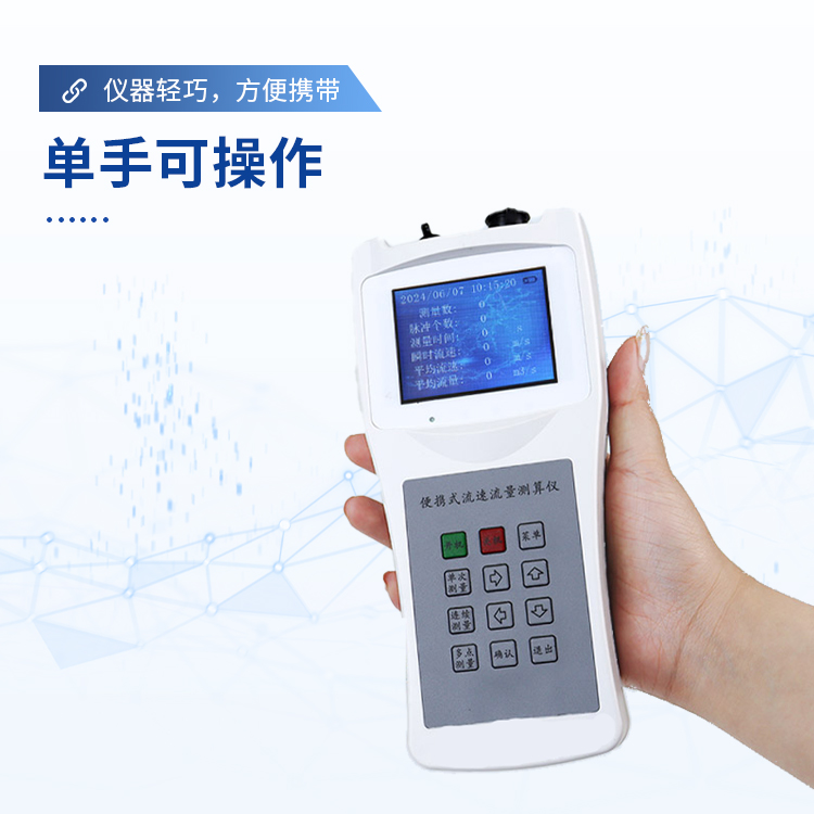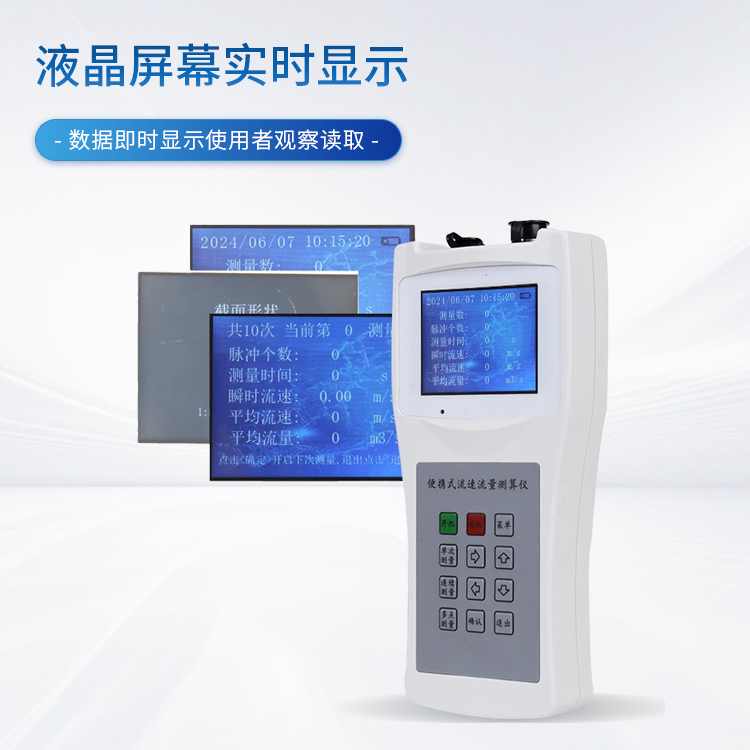 流量测量:输入被测断面类型,并手工输入(或者通过辅助传感器测量)规则断面的水位、宽度计算断面面积,仪表更具Q=V*S测算流速Q值