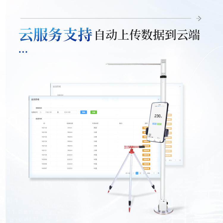 10、广泛应用性 - 最低测量高度0.05米,最大测量高度2.6米,适用于大多数类型的农作物株高测量需求。